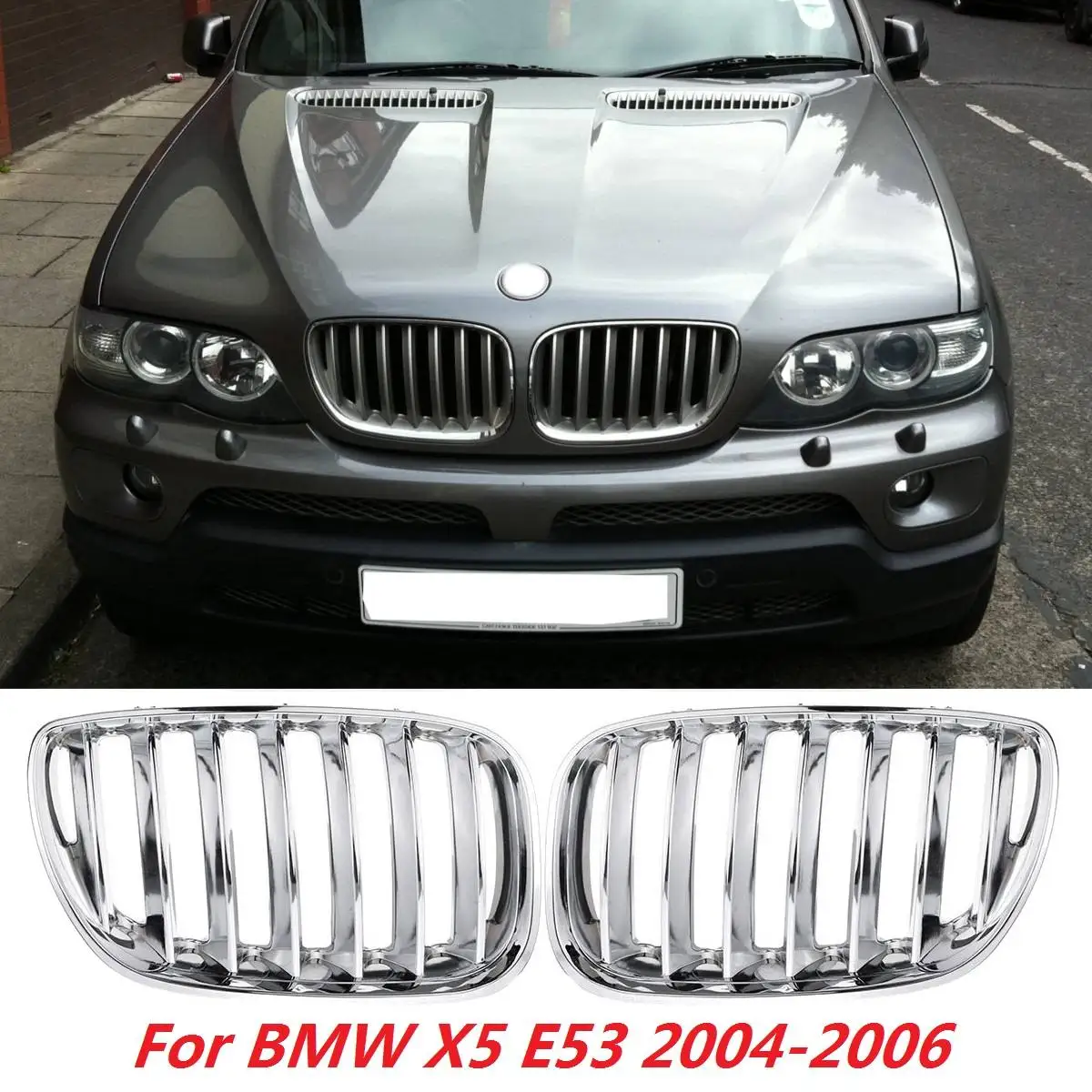 For Bmw X5 E53 2004 2005 2006 Pair Chrome Front Hood Kidney Grills Grille Front Bumper Grille Car Styling Racing Grills Aliexpress